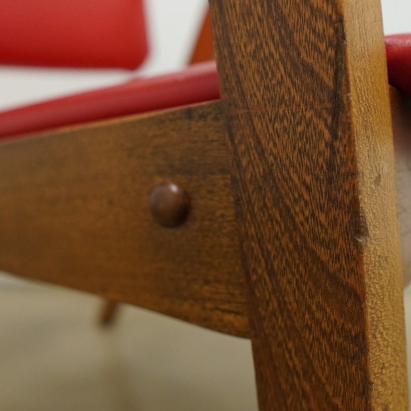 Condition: Very good vintage condition with light, expected wear consistent with age and use. One chair shows a small, discreet cut to the seat upholstery, and there is a minor nick to one leg. Overall, the pair presents beautifully with a strong, clean structure and well-maintained appearance.