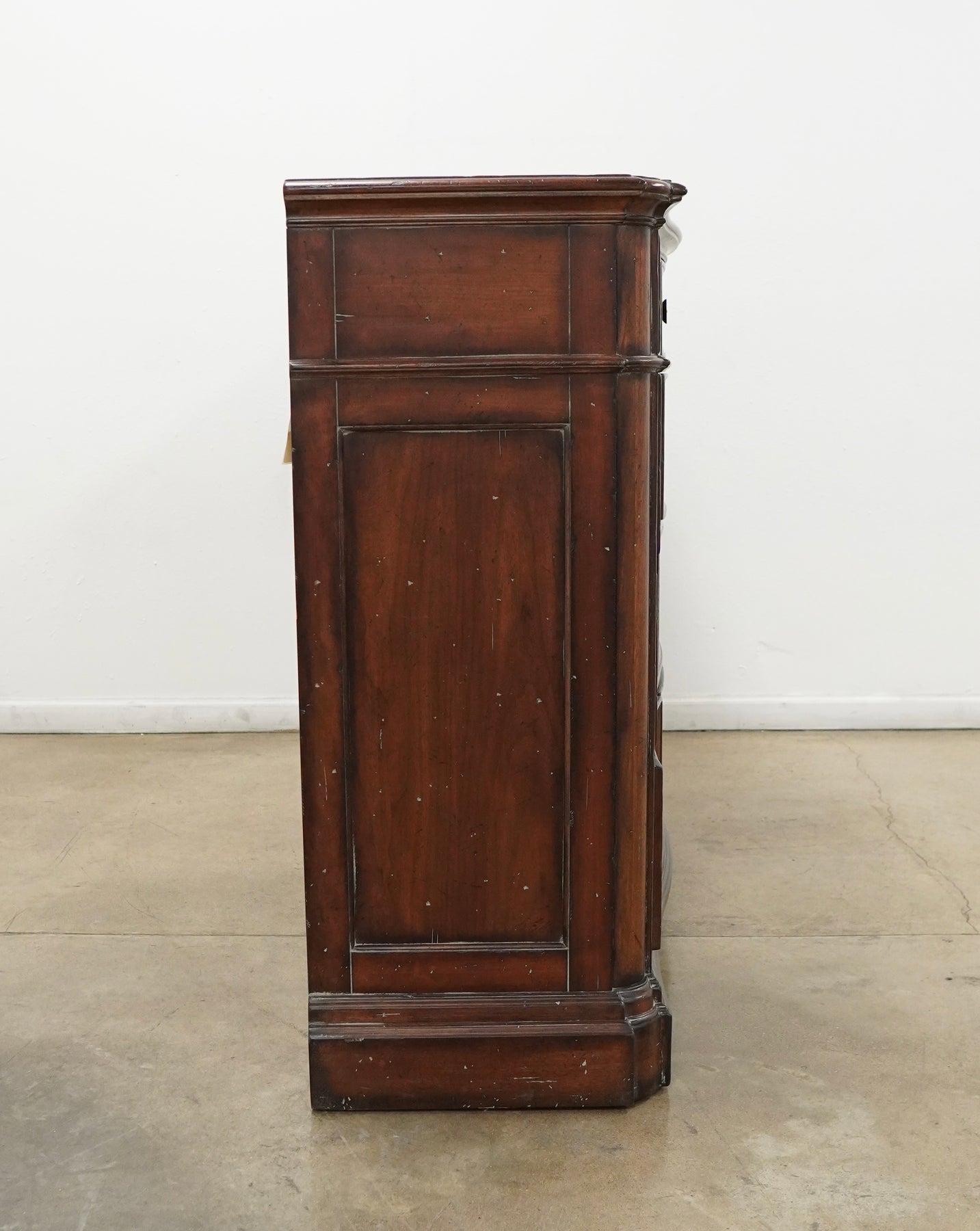 Condition: Good condition with visible wear from use, including scuffs and finish wear to the top, edges, and drawer fronts. All drawers function properly.