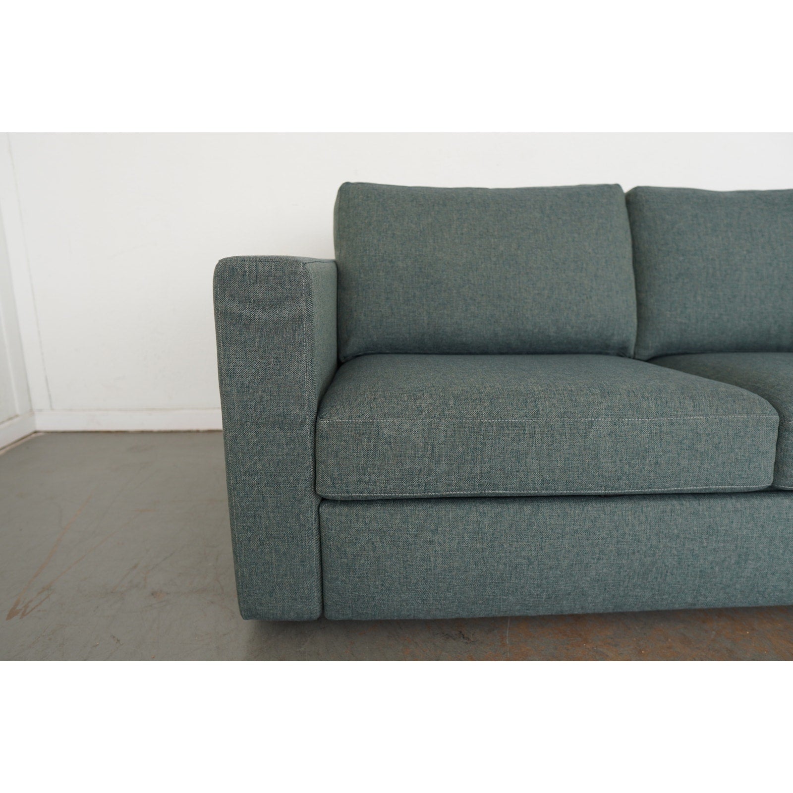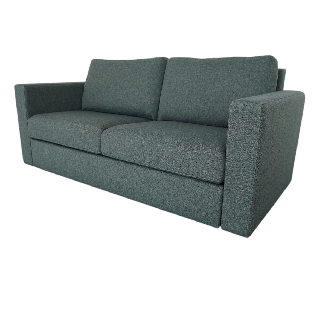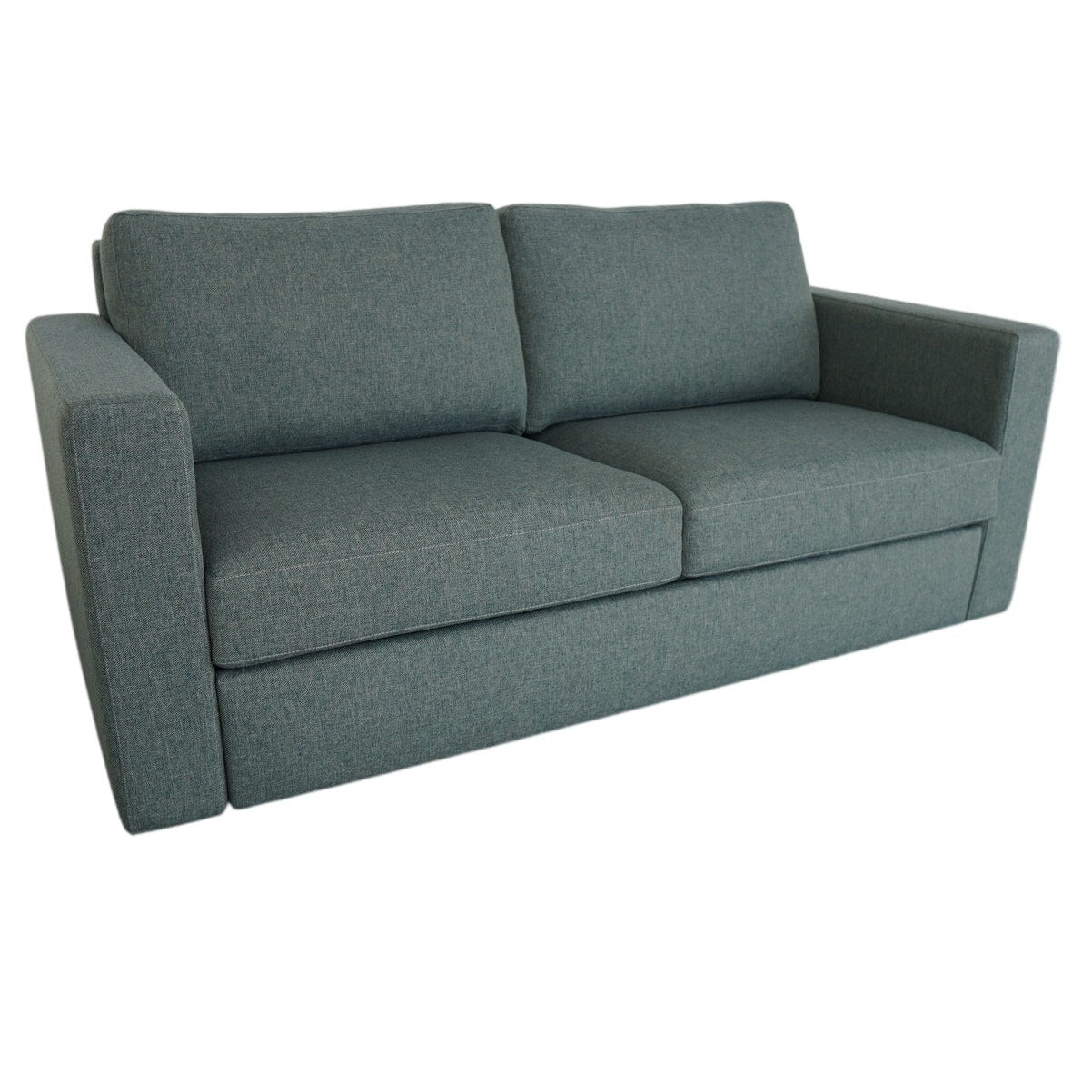 Simple lines and a comfortably angled back give our Berin Day & Night sleeper sofa a modern yet relaxed profile. Featuring a 6" wide arm and upholstered in Sumner Lagoon plain weave fabric, it’s finished with wood low block legs in a charcoal stain for a clean, grounded look. Providing a comfortable, firm sleep experience, Day & Night sleeper sofas have traditionally sized mattresses that fold out into a trifold sleep surface.